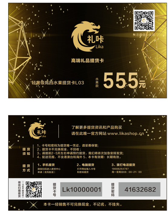提货卡的使用方便、灵活,同时节省了客户等待送货、签收和物流配送时间,可以让客户更方便地自主选择提货时间和地点,同时也是商家提高销售和服务管理效率的有效方式之一。